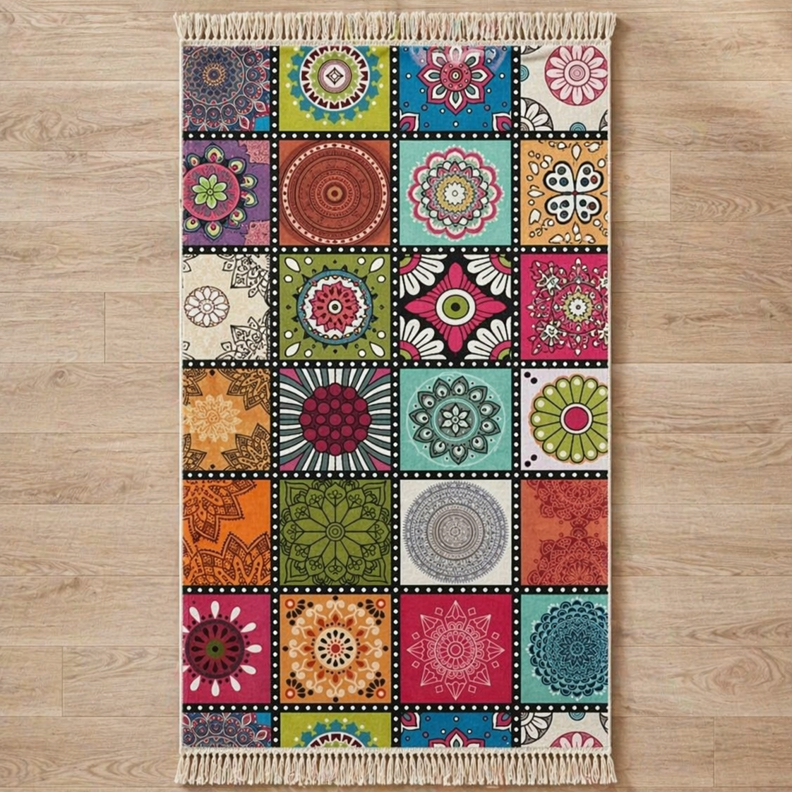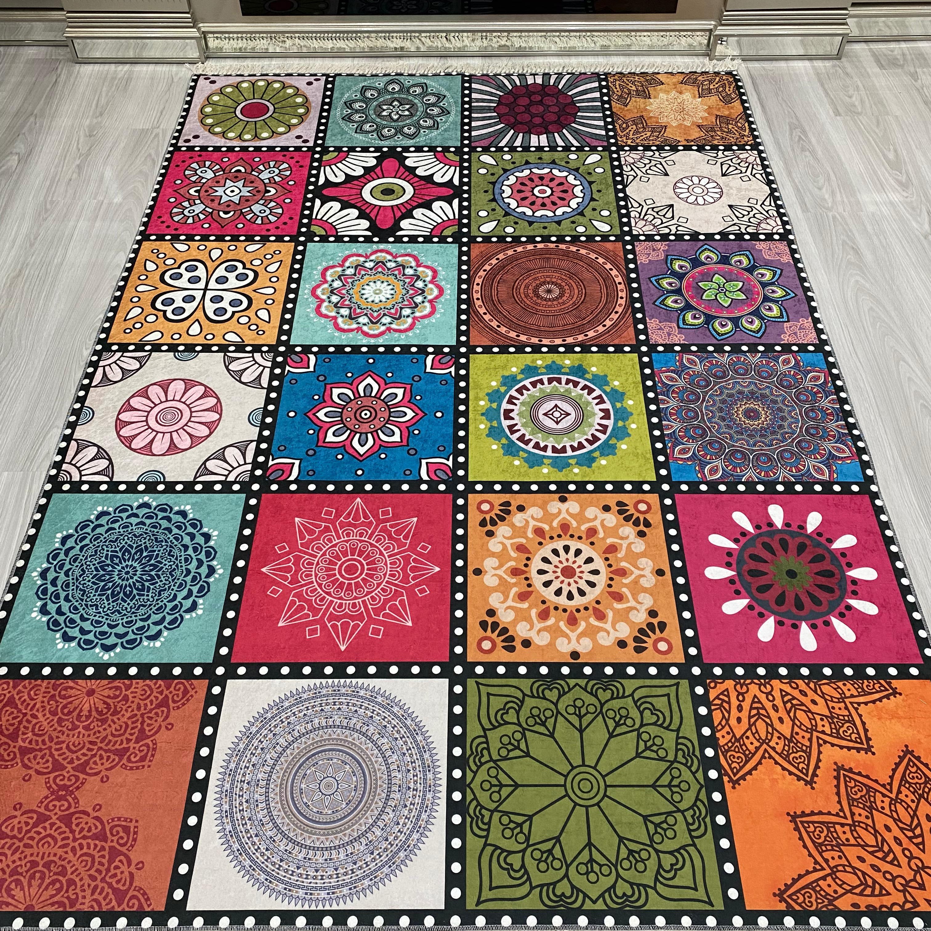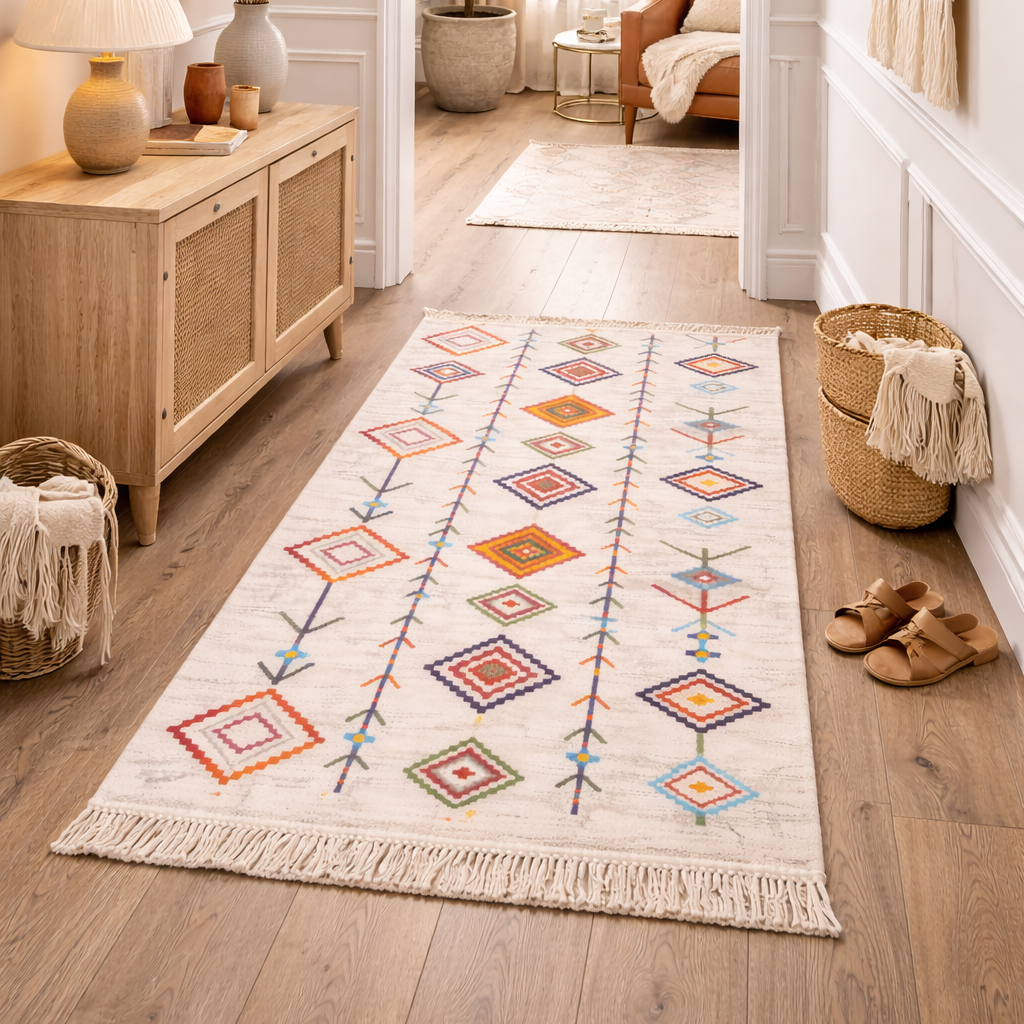 Digitálisan nyomtatott szőnyeg, csúszásmentes hátoldallal ellátva, lapos szövésű 7 mm vastag, kellemes bársonyos hatású texturált érzetű, mosógépben mosható. A digitális nyomtatásnak köszönhetően szép élénk színekkel rendelkezik, nem fakulnak ki a színek, foltálló, könnyen tisztítható, kisállat barát. Robotporszívó kompatibilis. Szőnyegeink a tartósság és stílus egyedi keverékét biztosítja, így tökéletesen illeszkedik minden enteriőrbe legyen szó akár gyerekekkel vagy háziállatokkal igénybe vett helyiségekről.