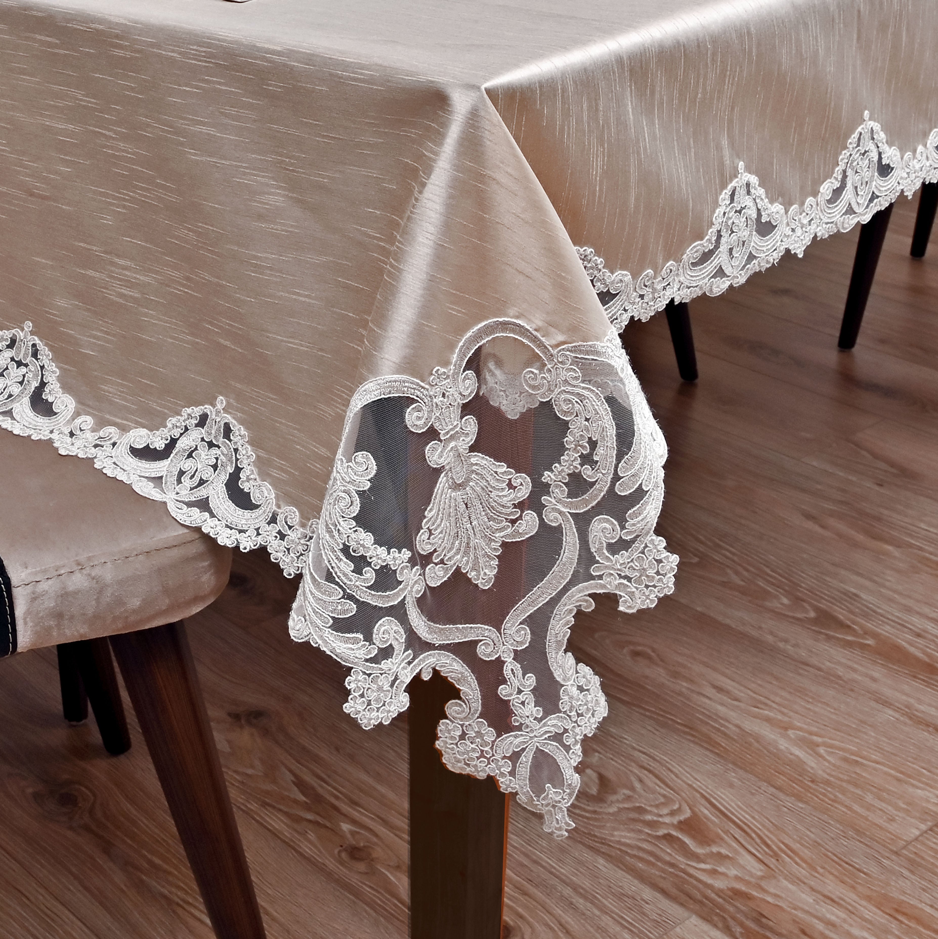Viento Lüx asztalterítő törtfehér arany csipkével 160 x 220 cm